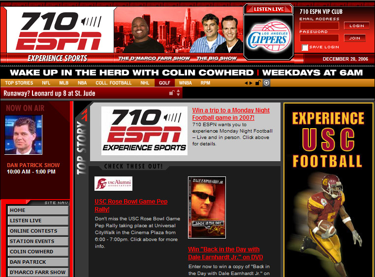 (Screen capture of the 710 ESPN home page, circa 2007)